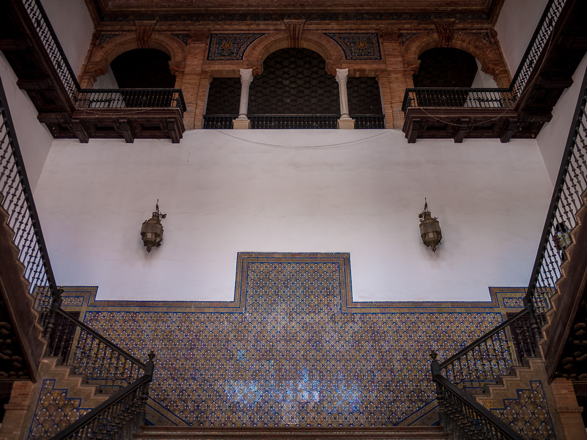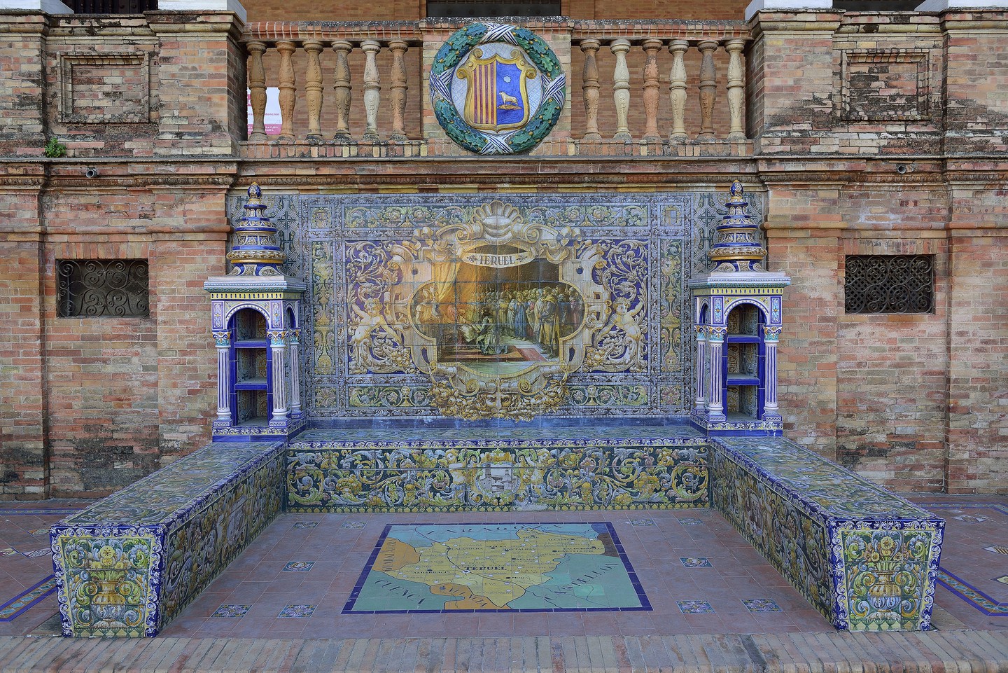 كما ويحيط بالمبنى 48 تجويفاً صغيراً مزيناً ببلاط السيراميك المميز بتصميمه، كل منها يرمز لإحدى مقاطعات إسبانيا، ولكل منها لوحة وخريطة خاصة. هذا التصميم الفريد للأجنحة يعرض القدرات الصناعية والحرفية للمدينة. اليوم، تم تحويل بعض الأجنحة الى متاحف، أشهرها المتحف الأثري ومتحف الفنون.