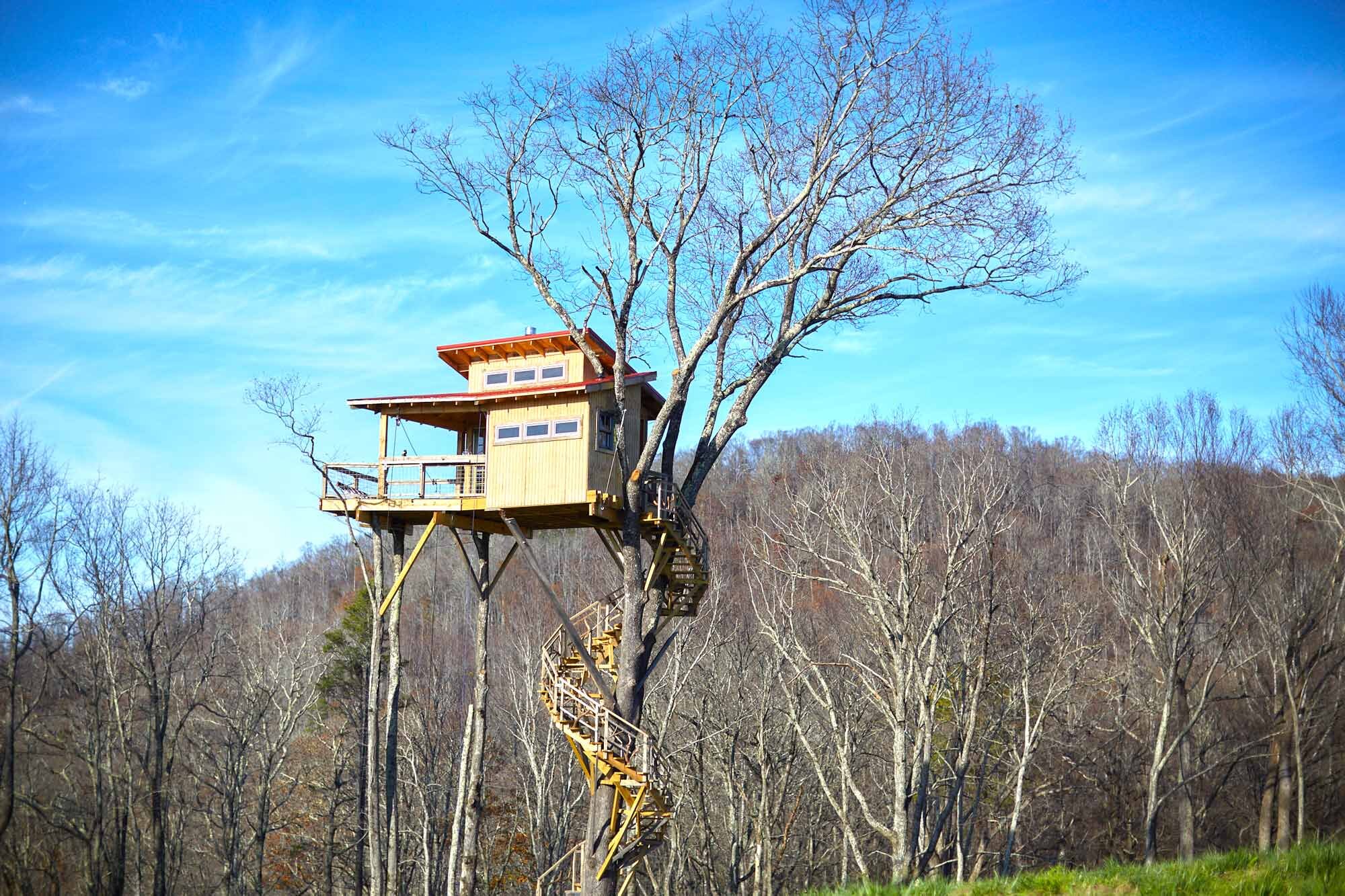 يقع "رافين روك تريهاوس" فوق الأشجار في محمية للحياة البرية تبلغ مساحتها 40 فداناً، حيث سيكون عشاق الحيوانات قادرين على اكتشاف حيوانات البوبكات والثعالب والغزلان والديك الرومي والصقور والبوم والغربان، من المنزل.