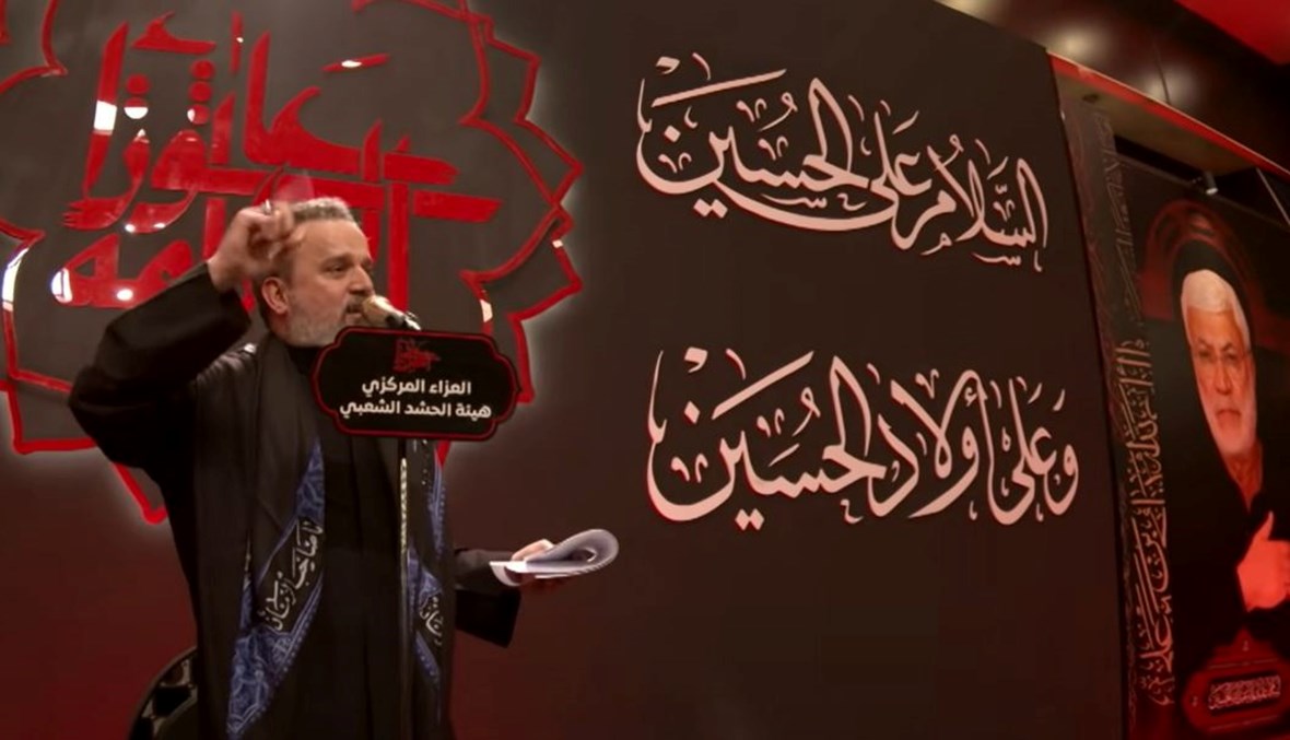 "وحق رب العرش واسمه وكتابه، دِما الشايب تضل ثار لشبابه"، ردد بأعلى صوته المنشدُ الكربلائي، مشيراً بإصبعه لصورة أبو مهدي المهندس، مضيفاً "يضل حاضر رغم حسرة غيابه". لم يقفِ ملا باسم عند ذلك، إنما راح يذكر المعزين أن دماء المهندس لن تضيع هدراً، قائلاً: "يجي يوم والعدو يدفع حسابه، دمه غالي ويبقى غالي، اسمه عالي ويبقى عالي". وهنا تنمحي الحدود بين "الشيرازية السياسية – العقائدية" و"الخمينية السياسية"، وكأن باسم الكربلائي يمثل صورة واحدة لوجهين يحملان من الاختلافات المريرة الكثير، وإن تشاركا جزءاً من التاريخ والعلاقات الحسنة بداية، والتي توترت لاحقاً بُعيد الثورة الإيرانية!