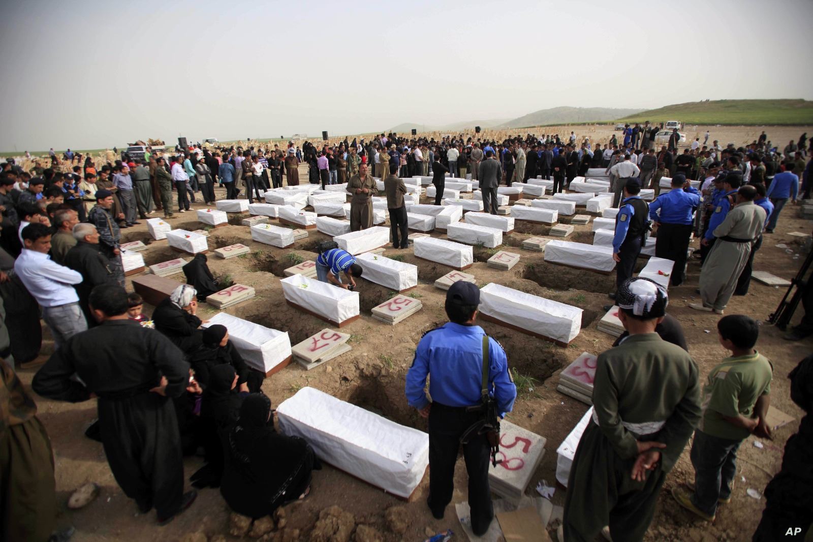 أكراد عراقيون يزورون إحدى مقابر ضحايا جريمة الأنفال.