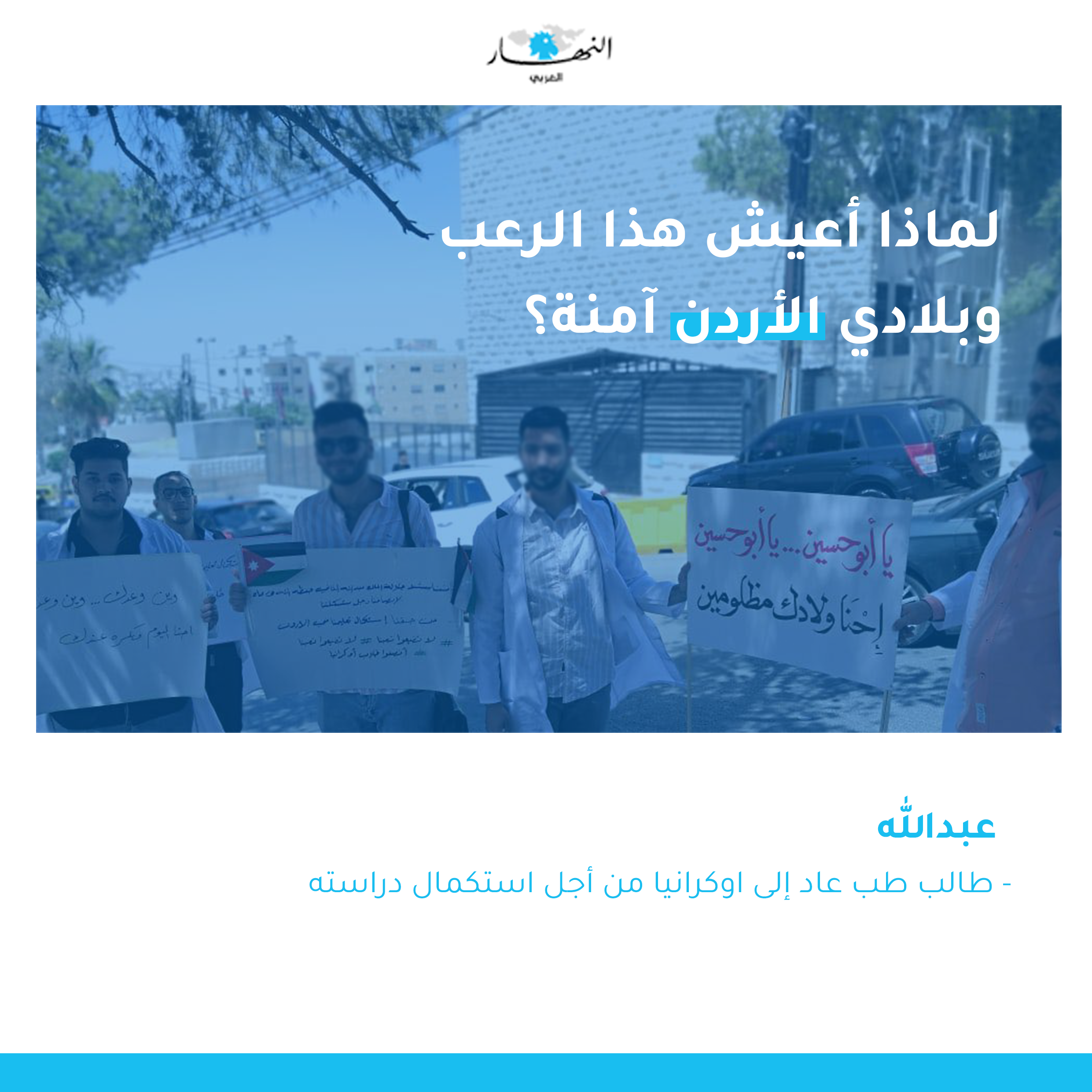 على عكس رامي وريم، غامر عبدالله في حياته وعاد إلى أوكرانيا من أجل استكمال دراسته، لكنه وأثناء حديثه إلى "النهار العربي" كان محتاراً ويتساءل "لماذا لم يسمحوا لي إكمال دراستي هناك بالأردن؟ لماذا جعلوني أغامر بعمري؟". ويضيف: "لماذا عدنا في المرة الأولى إلى الأردن ثم عدنا إلى أوكرانيا مجبرين لاستكمال الدراسة؟".