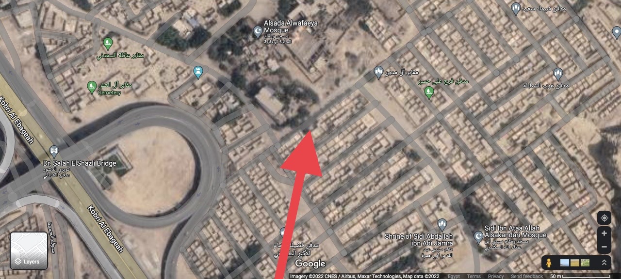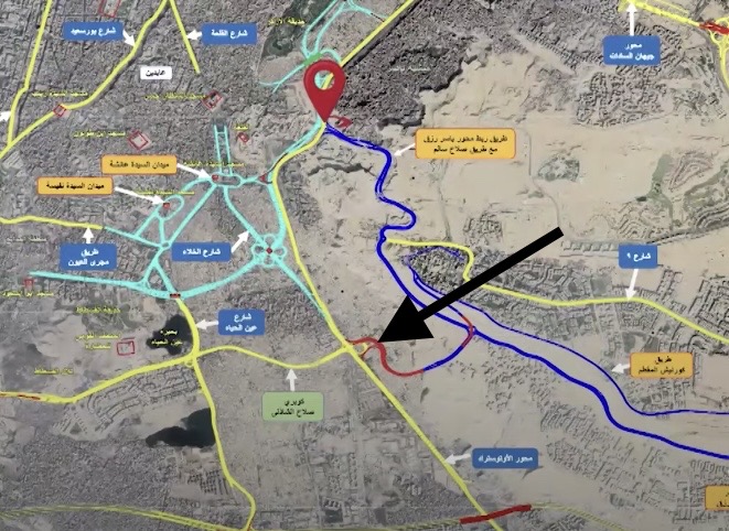 تحققنا من موقع مقبرة طه حسين التي لا يوجد لها موقع على خرائط "غوغل"، لكن بزيارتها أمكن تحديد موقعها، من طريق خاصية تحديد الموقع اللحظي، وتبين أن الموقع قريب من مسار المحور الذي كشفت عنه الخرائط المنشورة في وسائل الإعلام المحلية.