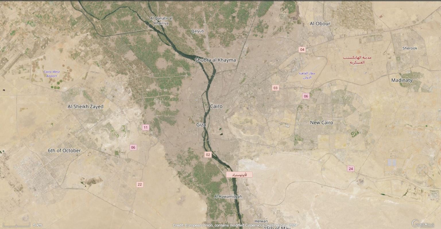 صور الأقمار الاصطناعية لمنطقة المعادي والمناطق المجاورة لها (كوبرنيكوس)