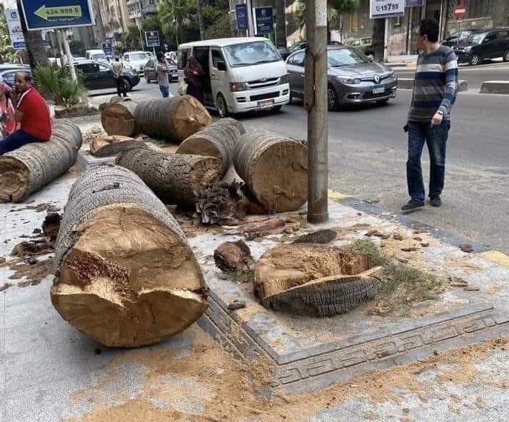 قطعت آلاف الأشجار داخل المدن المصرية ضمن أعمال توسعة وتطوير الطرق