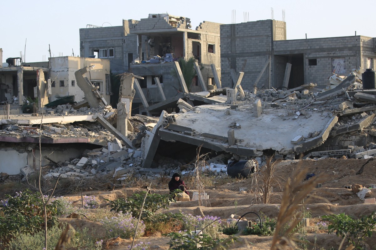 فلسطينيّون بين الدمار. (أ ف ب)