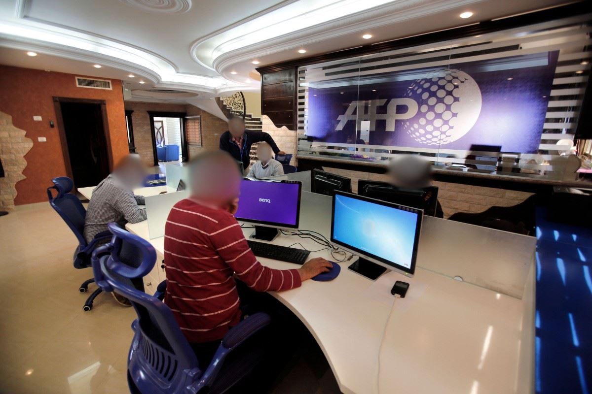 صحافيون في مكنب "أ ف ب" في غزة. (أ ف ب)
