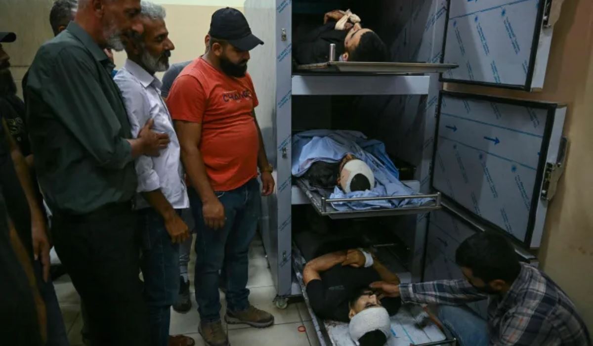 فلسطينيون يلقون نظرة أخيرة على 3 جثامين اليوم (أ ف ب)