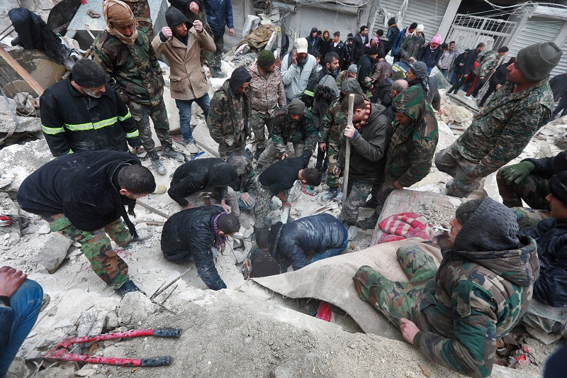 ومنذ فجر الإثنين، ينهمك سكان ومسعفون في محافظات سورية عدة بالبحث عن ناجين تحت أنقاض مبان سقطت على وقع الزلزال المدمر الذي ضرب البلاد، ومصدره تركيا المجاورة، فيما لم تتوقف الأمطار لتعقد مهمتهم الصعبة في ظل إمكانات محدودة.