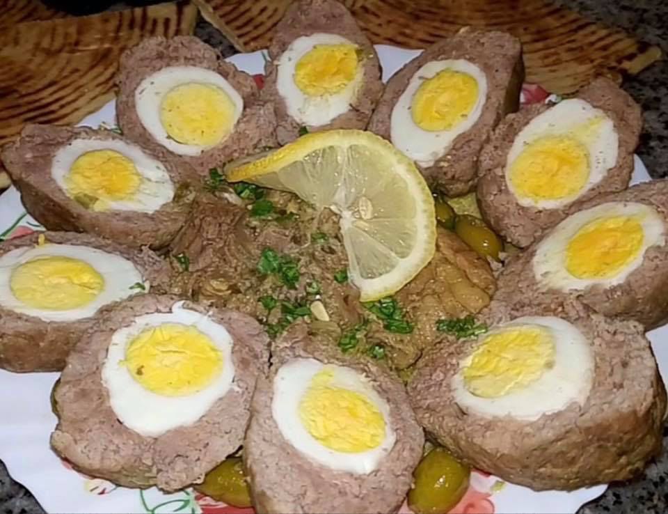طريقة تحضير هذا الطبق سهلة ولا تتطلب وقتاً كثيراً، فهو عبارة عن تغطية البيضة المسلوقة باللحم المفروم أو الكفتة ويُنكّه بالثوم وكمية من البصل والقليل من البقدونس أو حشيشة المعدنوس باللهجة المحلية، وكمية قليلة من الخبز اليابس المطحون والملح والفلفل الأسود وكمية من القرفة، ثم يُجمع الخليط بالبيض. وبعد الانتهاء من تشكيل البيض المسلوق تُقلى في الزيت وتقسم الحبة الواحدة نصفين، وفي الأخير يُرفق هذا الطبق بمرق أبيض تقليدي، وهو الأكثر شيوعاً، يُعدّ بالبصل وكمية قليلة من الثوم والفلفل الأبيض وعود من القرفة وأطراف من لحم الغنم والحمص المنقوع.