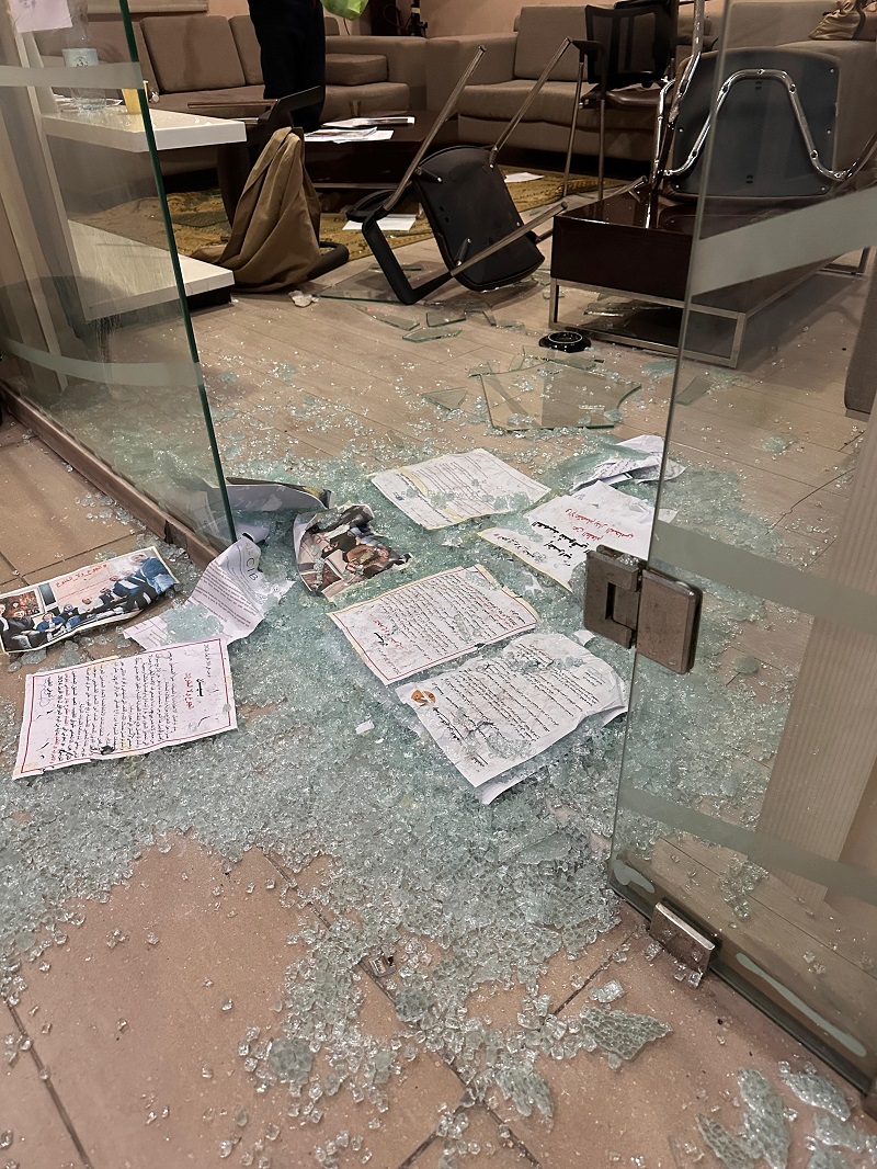 وأظهر بث مباشر على وسيلة الإعلام الإلكترونية "تونس ميديا" مقاطع مصورة لأبواب زجاجية مهشمة وكراس ملقاة بينما كان المحامون يصرخون أثناء اعتقال زقروبة.