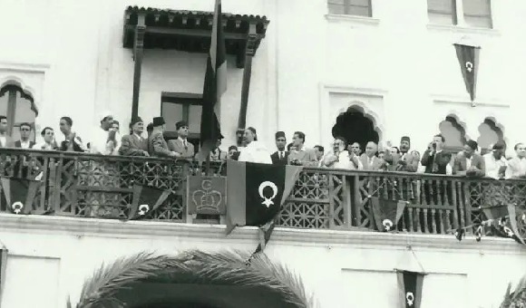 الملك السنوسي يعلن استقلال ليبيا من على شرفة القصر