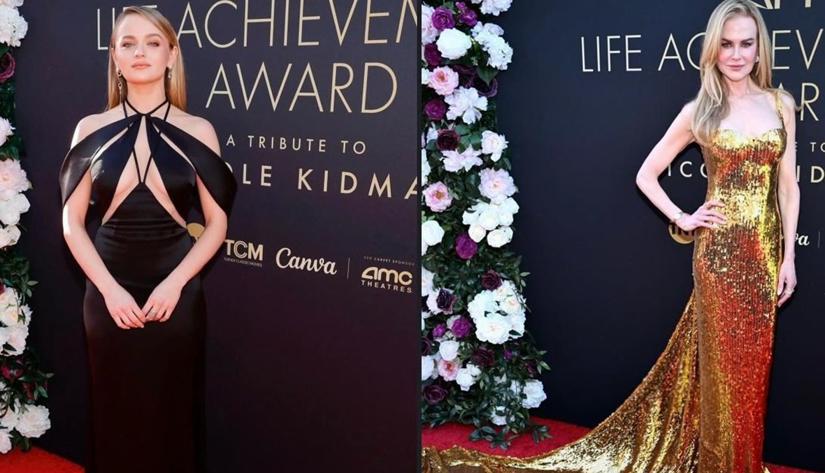 كُرّمت نيكول كيدمان في حفل الجوائز السّنوي AFI Life Achievement Award لتميّز أعمالها السينمائيّة خلال مسيرتها الفنيّة الطويلة، وكانت إطلالة النجمة الهوليووديّة الأجمل على الإطلاق، تلتها جوي كينغ بفستانٍ أنيقٍ رغم جرأته.