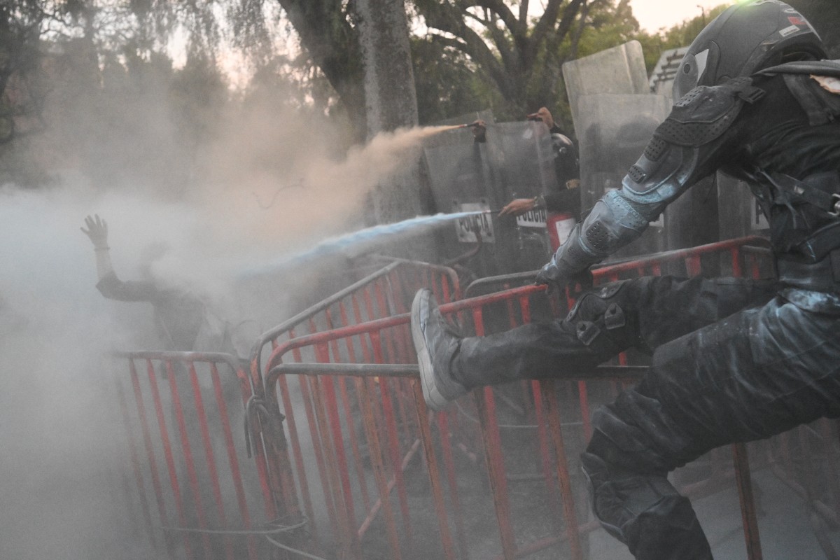 مواجهات مع الشرطة المكسيكية أمام سفارة إسرائيل (أ ف ب)