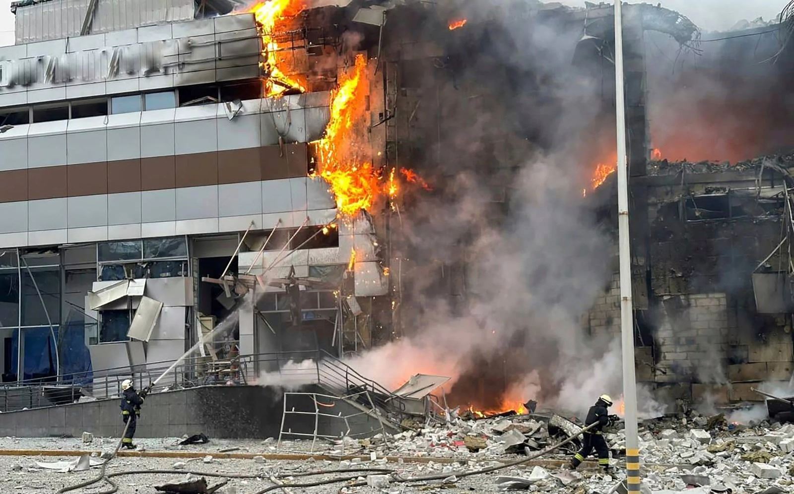 ولفت كيم وخدمة الطوارئ الحكومية في أوكرانيا الى أن الهجوم الروسي تسبب أيضا في تحطيم نوافذ في فندق قريب وإن البنية التحتية للتدفئة تضررت.