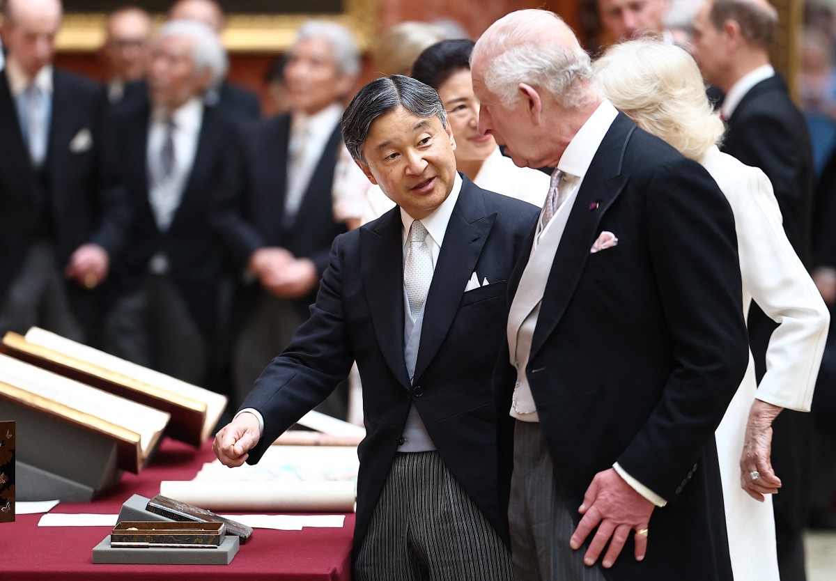 ويصطحب الملك الذي يستضيف شخصيات في زيارة دولة للمرة الأولى منذ الكشف عن إصابته بالسرطان في شباط (فبراير)، الإمبراطور والإمبراطورة بعد ذلك إلى معرض مخصص لمجموعة العائلة الملكية المتعلّقة باليابان.