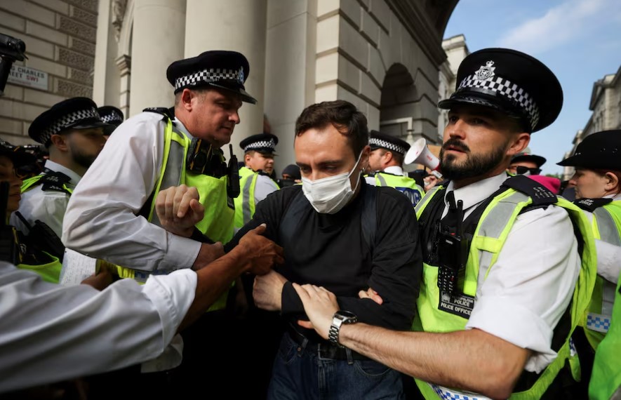 وأشارت شرطة العاصمة في لندن إلى أن المحتجين وصلوا إلى مقر وزارة الخارجية ومنعوا مرور المشاة والمركبات. وذكرت الشرطة في وقت لاحق أن الاحتجاج يمكن أن يستمر إذا ظل الشارع مفتوحاً.