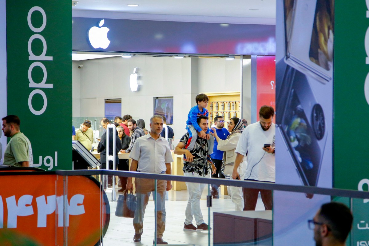 داخل مقهى في طهران، يحرّك حميد هاتفه المحمول آملاً في التقاط إشارة إرسال ضعيفة والتحايل تالياً على الحظر المفروض من السلطات الإيرانية على أحدث طرازات هواتف "آي فون".