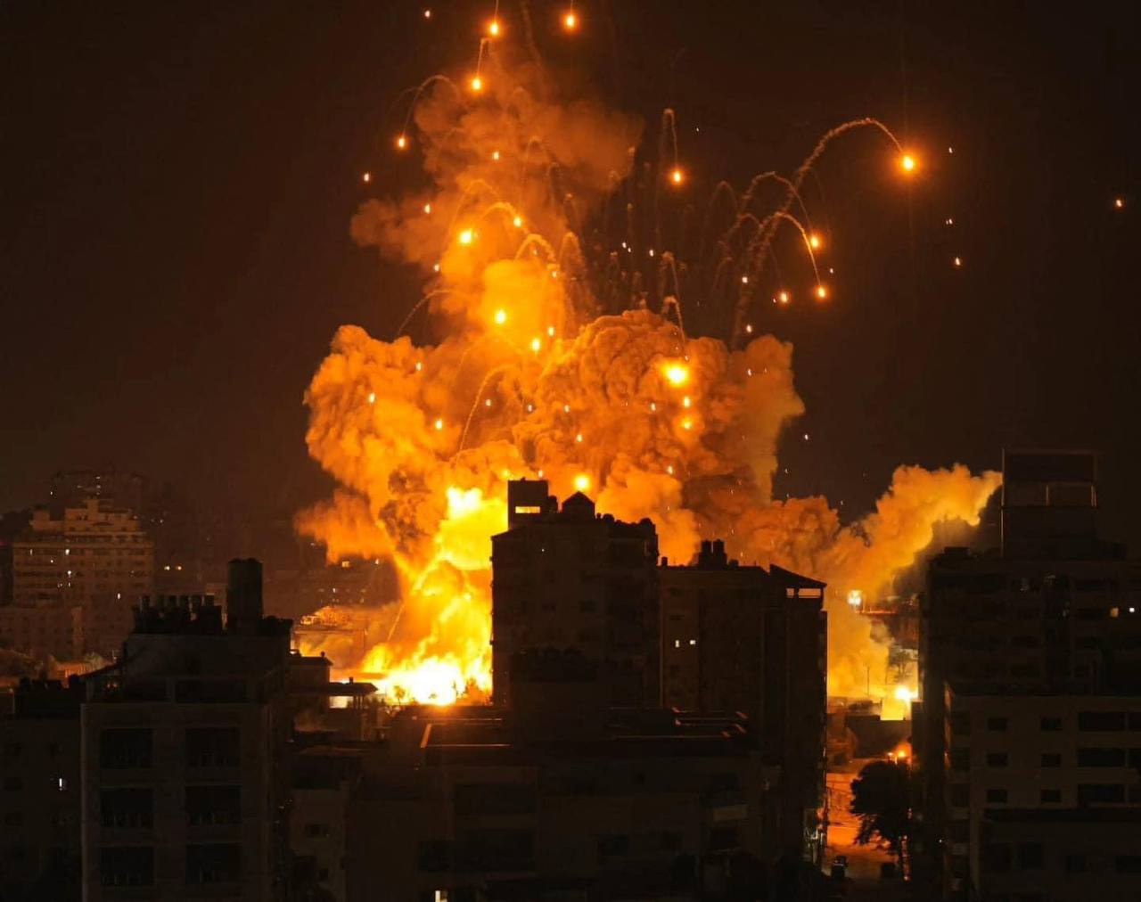 وقبيل الساعة الثانية من فجر الأحد بالتوقيت المحلّي (23,00 من ليل السبت بتوقيت غرينيتش)، صدح دويّ في المدينة التي أشعّت سماؤها أضواء حمراء وصفراء، في مشهد صورته وكالة فرانس برس وتداول عدة سكّان لقطات له على مواقع التواصل الاجتماعي.