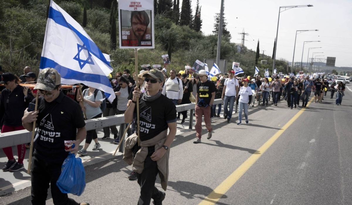تظاهر مئات الإسرائيليين في مدينة رحوفوت وسط إسرائيل اليوم السبت، للمطالبة بإجراء انتخابات مبكرة وإطلاق سراح المحتجزين الإسرائيليين في قطاع غزة.