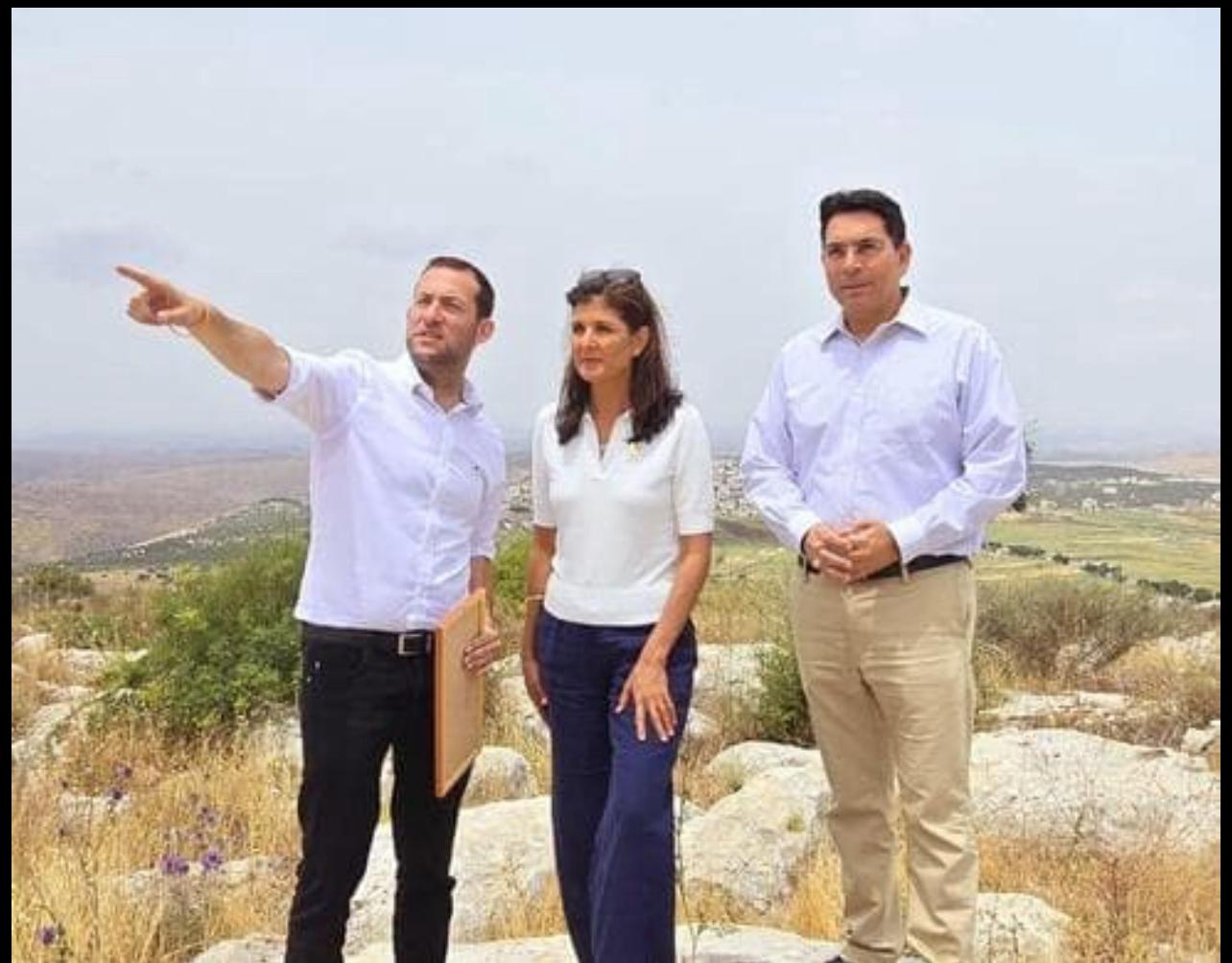 زارت المرشحة السابقة عن الحزب الجمهوري لرئاسة الولايات المتحدة، وسفيرة الولايات المتحدة السابقة لدى الأمم المتحدة نيكي هالي، شمالي الضفة الغربية وشمال إسرائيل اليوم الثلثاء، وقالت خلال زيارتها إنَّ "غالبية الشعب الأميركي تدعم إسرائيل".