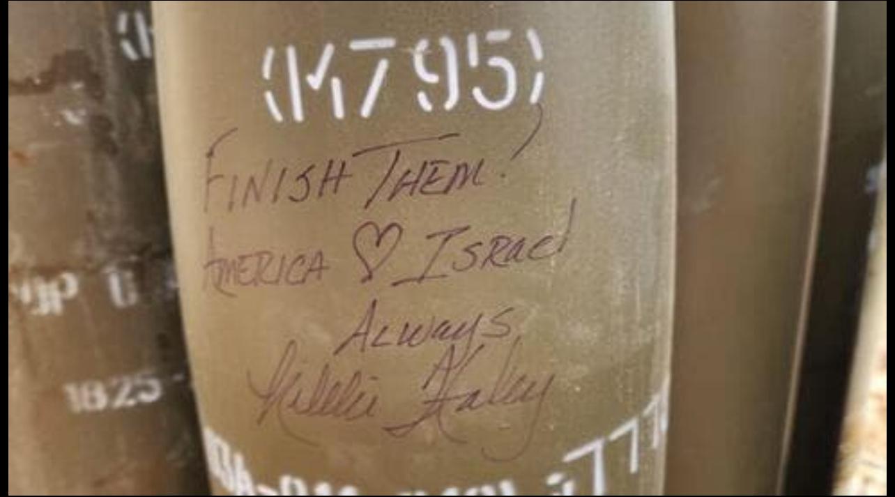 وفي جولة في الحدود الشمالية، وصلت هيلي إلى رأس الناقورة وزارت أيضاً بطارية مدفعية تابعة للجيش الإسرائيلي، حيث وقعت عبارة "finish them " "اقضوا عليهم" على قذيفة.