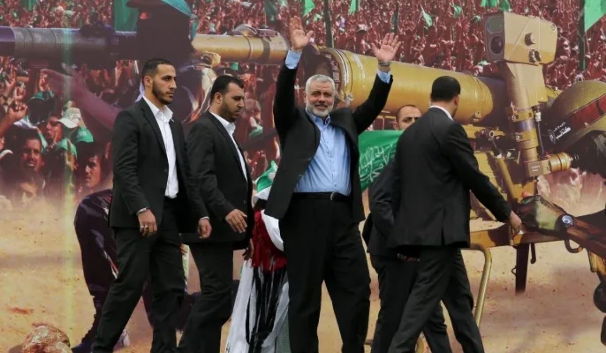 إسماعيل هنية ملوحاً بيديه