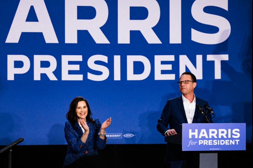 حاكمة ميشيغان غريتشن ويتمر وحاكم ولاية بنسلفانيا جوش شابيرو (أ ف ب).
