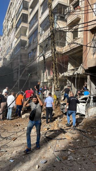 مشهد من مكان الغارة الإسرائيلية التي أدت لاغتيال قائد قوة الرضوان في #حزب_الله #إبراهيم_عقيل بالضاحية الجنوبية لـ #بيروت pic.twitter.com/9h7HmyIwlJ
