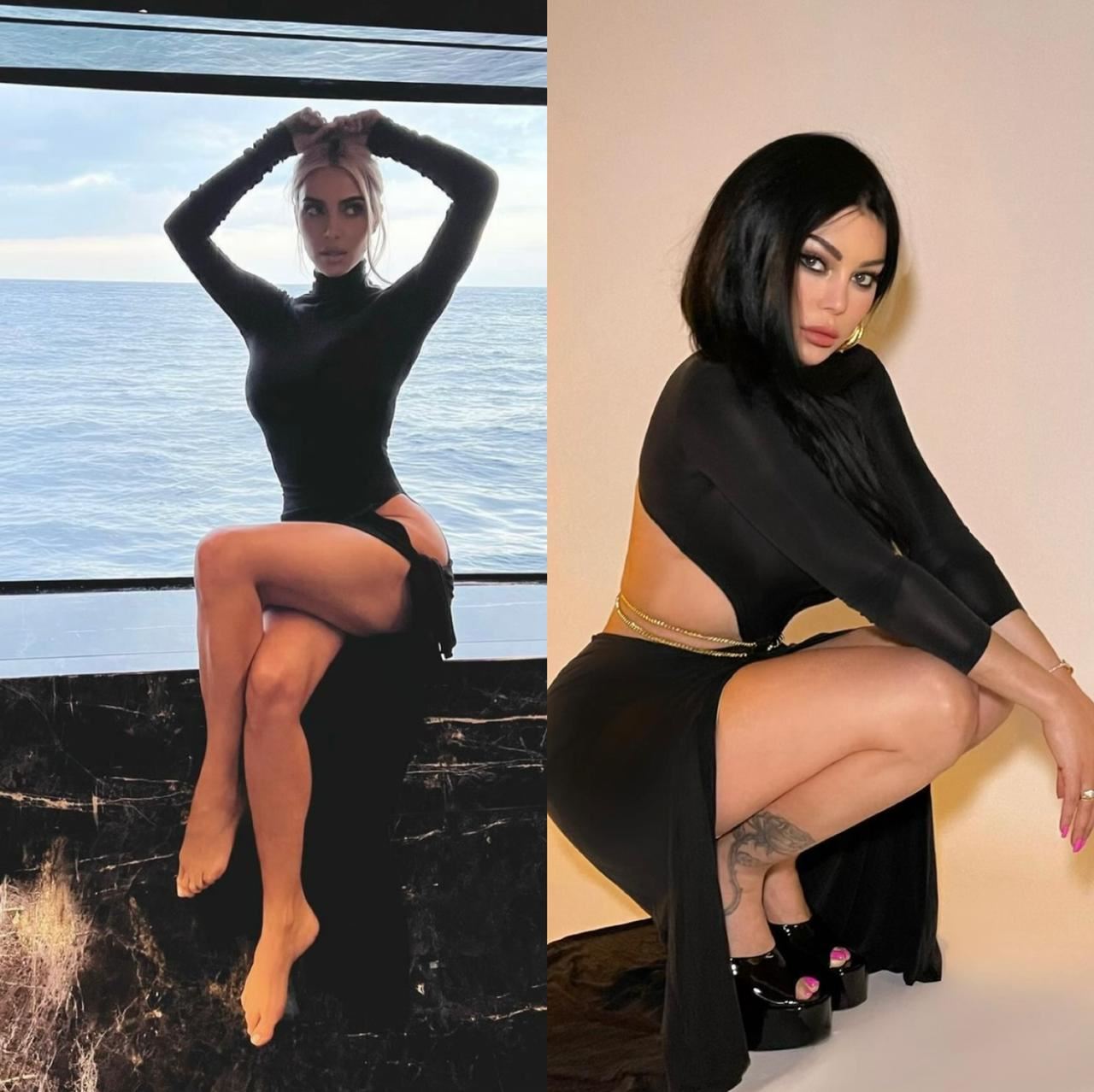وهذا ما حصل أخيراً بين إطلالة هيفاء وهبي وكيم كاردشيان اللتين تمّتا بفستان متشابه اللّون والتصميم، إذ نشرت هيفاء صور ارتدائها فستاناً أسود بفتحة أماميّة تصل إلى ما فوق الركبة، وبفتحات جانبية Cutouts، أظهرت قوامها الممشوق.
