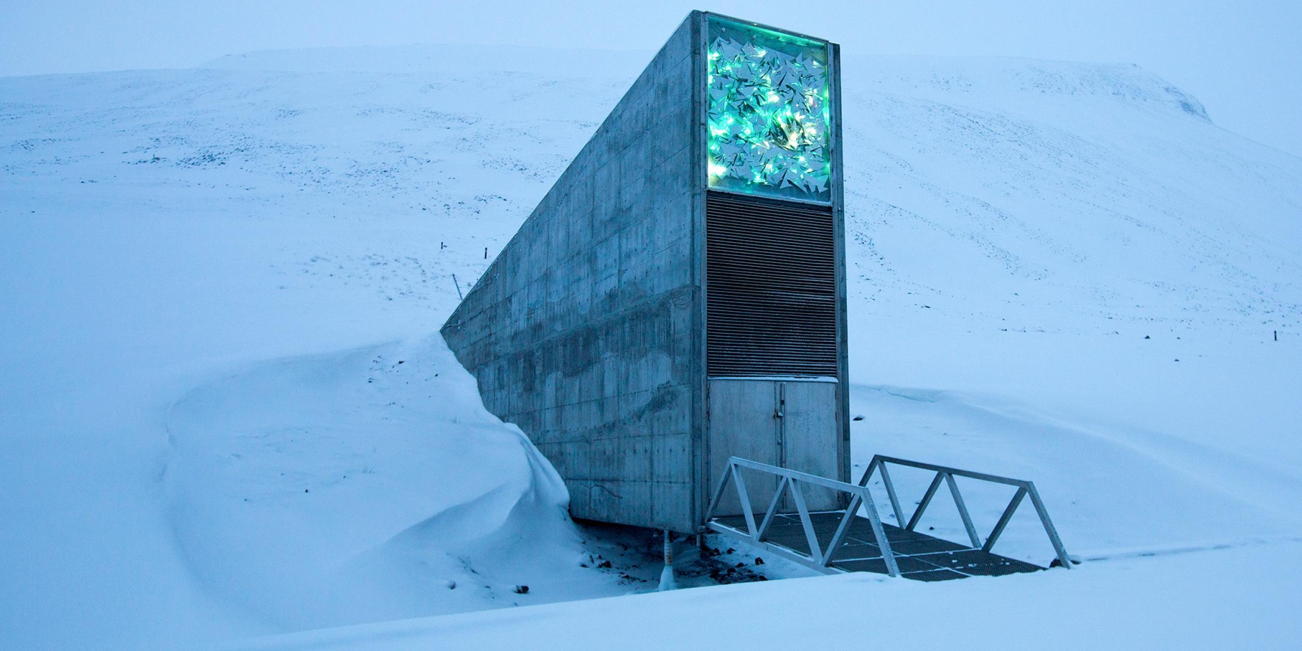 يقع المخزن في جزيرة "سبيتسبيرغين" في القطب الشمالي ويتبع النرويج، ويطلق عليه اسم "سفالبارد". تبلغ مساحته نحو 11000 قدم مربّعة، ويحتوي على أكثر من مليون عيّنة من البذور. يعمل القبو كنوع من الاحتياطي لمحاصيل العالم، ويحافظ على العيّنات في مكان آمن في حال وقوع كارثة بيئية، ولا يدخله سوى عمّال المخزن.