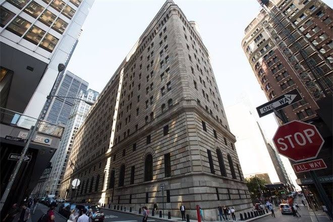 أكبر مستودع ذهب في العالم تبلغ قيمته نحو 200 مليار دولار أميركيّ، ويقع على عمق 9 أمتار تحت أنفاق مترو المدينة، في داخل بنك الاحتياطي الفيدرالي الأميركي (FED) في مدينة نيويورك (الولايات المتحدة الأميركية)، الذي يُشبه مبنى Fed New York، وهو بنصفه مبنى إداريّ، وبنصفه الثاني مثل قلعة من القرون الوسطى. كانت النوافذ في الطبقات الثلاث السفليّة مغطّاة بقضبان حديديّة كبيرة. أعلاه برج دائري. الصورة: رويترز.