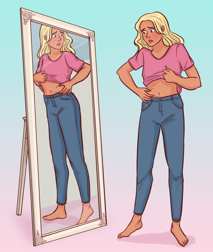 قد تكون وسائل التواصل الاجتماعي سببًا جيدًا لشعورك دائمًا بالحاجة إلى مقارنة جسمك بأجسام الآخرين. تميل إلى العثور على عيوب في جسمك، وتسعى إلى التحقق من صحة أحبائك. تسألهم عما إذا كانوا يرون أي خطأ في جسمك أو إذا تغير أي شيء مع وزنك وشكلك مؤخرًا.
