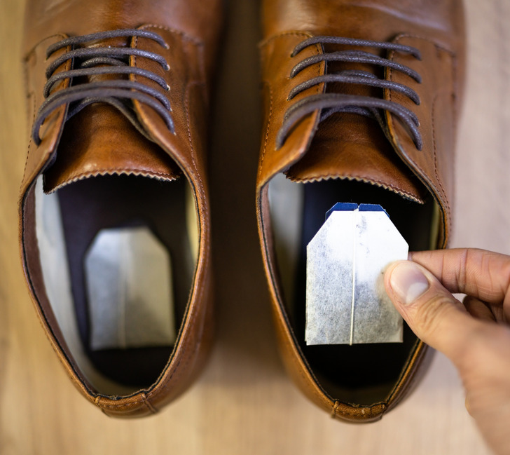 ضع في حذائك بعض أكياس الشاي واتركها طوال الليل، هذا الحلّ أرخص بكثير من شراء مزيلات رائحة الأحذية باهظة الثمن، كونها تنفد بسرعة، وسيمنحك الشاي الرخيص النتيجة ذاتها.