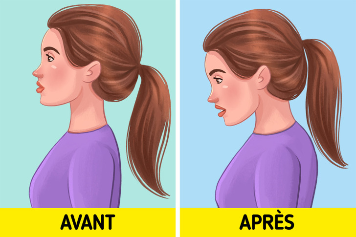 إذا كنت تتنفس من خلال فمك، فأنت تميل رأسك إلى الأمام من دون وعي، وتقوم بتطوير وضعيّة متراخية من أجل فتح مجرى الهواء.
