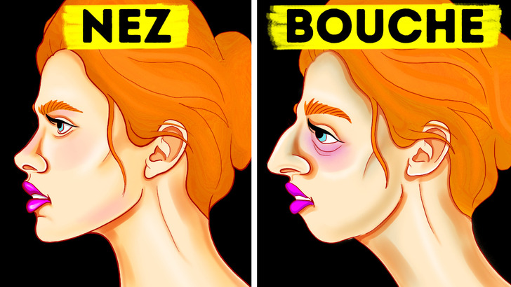 إذا كنت تتنفس من خلال فمك، فستلاحظ في النهاية أن شكل وجهك يتغيّر ويكبر للأمام وللأسفل، وهذا عادةً ما يكون أكثر وضوحًا عند الأطفال، لأن وجوههم لا تزال تنمو؛ لذلك عندما تتنفس من خلال فمك، يضيق فكّك وخدّاك، وينتج من هذا بعد ذلك تغيير في شكل أنفك، وقد يُصبح أنفك وشفتك العليا أرقّ، وقد يظهر لك سنًا مفتوحة.
