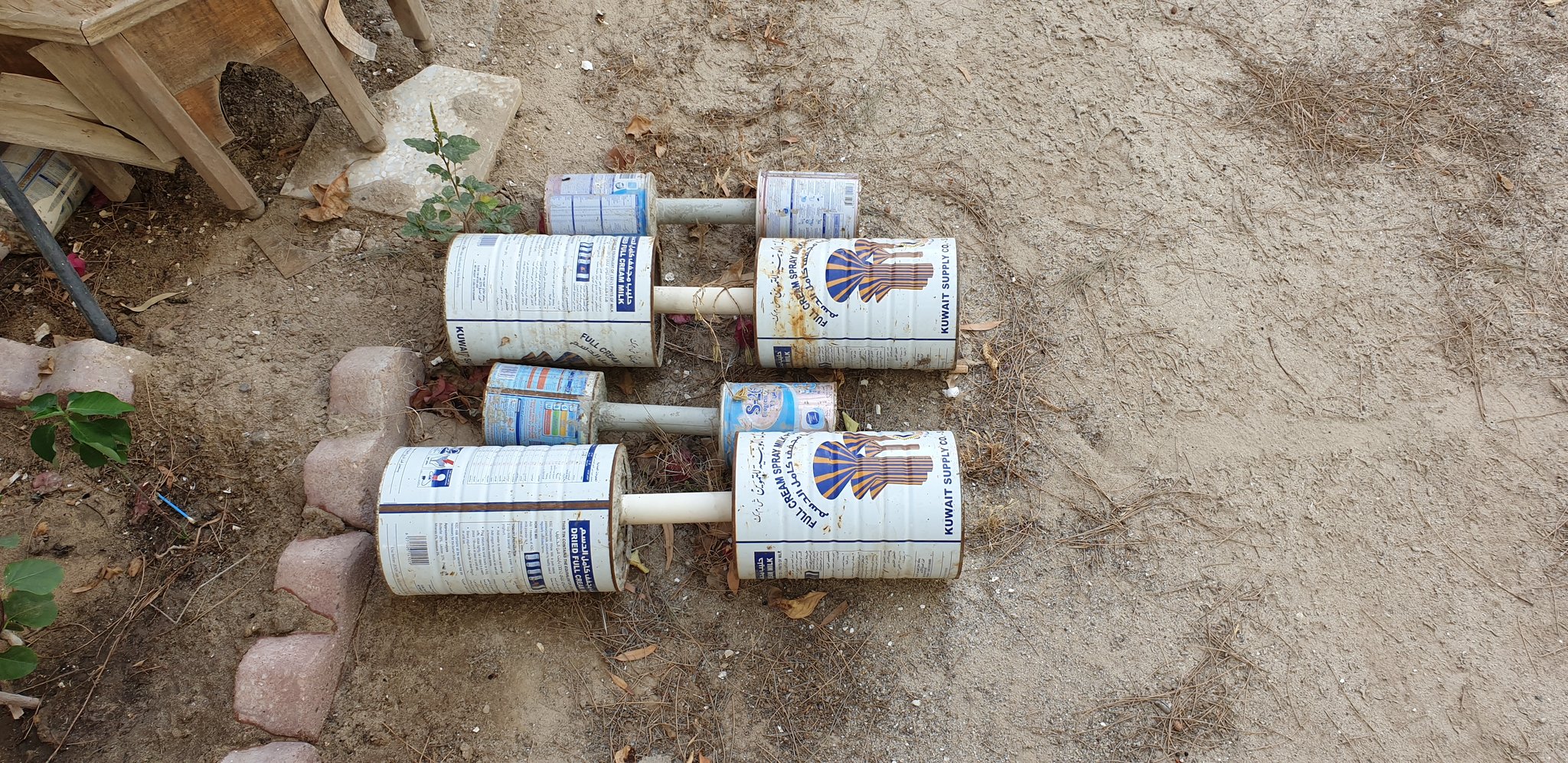 على أسطح المنازل في القرى حيث لا نوادي رياضية، يحاول الشبان ابتكار البديل. علب حليب فارغة تحتوي على إسمنت، مثبتة إلى أنبوب معدني لتتحوّل بذلك إلى أثقال.