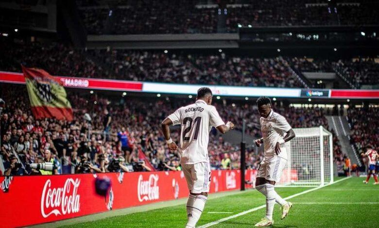 حل النادي الملكي ضيفاً ثقيلاً على جاره في المدينة نادي أتلتيكو مدريد حيث تمكن الريال ليلة أمس من انتزاع الفوز على ملعب الواندا ميترو بوليتانو بنتيجة 2-1، والجدير بالذكر أن بعد الانتقادات اللاذعة وحملة العنصرية التي تلقاها اللاعب البرازيلي فينيسيوس جونيور بسبب احتفاليته برقصة السامبا البرازيلية بعد تسجيل هدفه الأخير، سجل مواطنه وزميله في الفريق رودريغو هدف التقدم للميرنغي ليلة أمس، وما كان من الشاب اليافع إلا أن دعم صديقة وأدى رقصة السامبا.