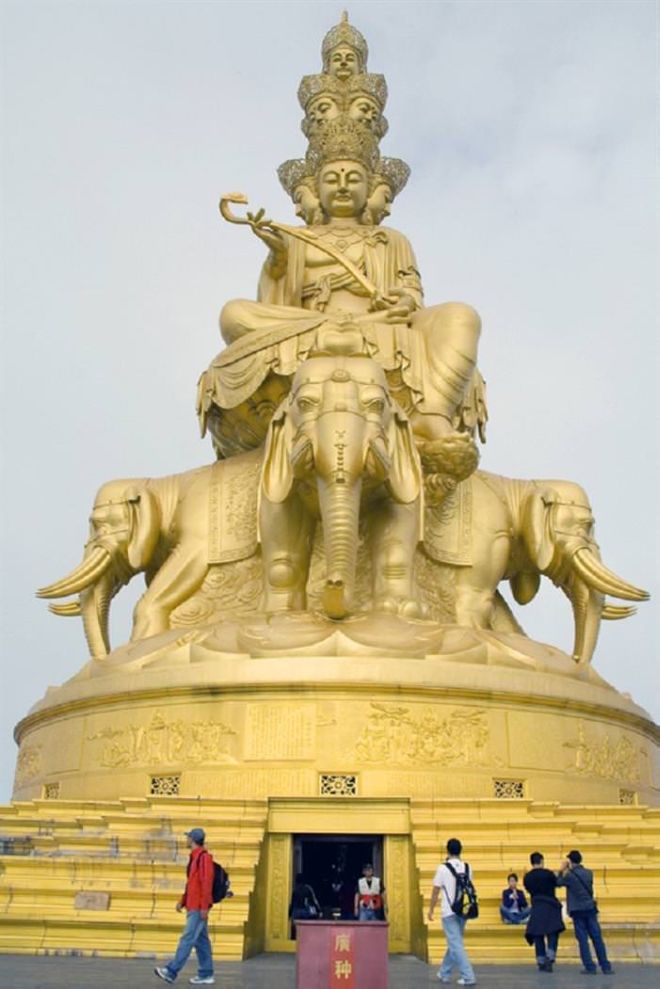 يمكن العثور على هذا التمثال المذهل الملوّن باللون الذهبي والذي يبلغ ارتفاعه 157 قدمًا لبوذا سامانتابهادرا في جبل إيمي في مقاطعة سيتشوان.