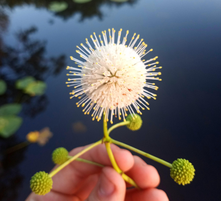"إلى جانب البحيرة، وجدت تلك الأزهار الغريبة التي تتكوّن من مئات الأزهار الأصغر حجماً، أودّ أن أعرف ما هي؟"