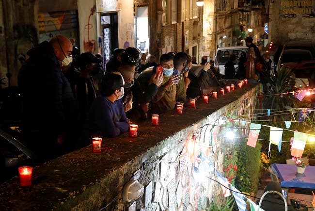 وبعد تأكيد نبأ وفاة مارادونا بعد إصابته بسكتة قلبية، بدأت أجراس الكنائس تقرع في جميع أنحاء الشوارع، فيما فرضت شرطة المدينة حالة الطوارئ منذ إذاعة الخبر.