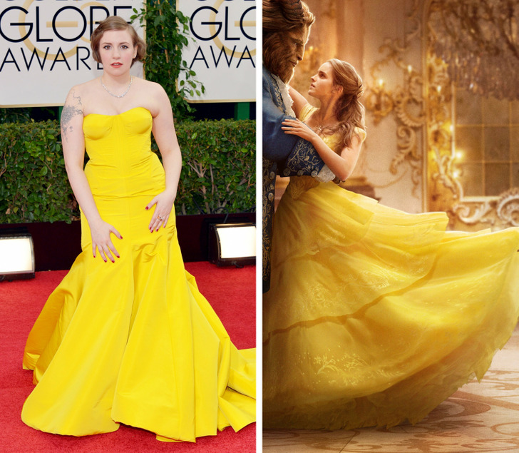 تبدو لينا دنهام بفستانها الأصفر كحسناء قصة "الجميلة والوحش"