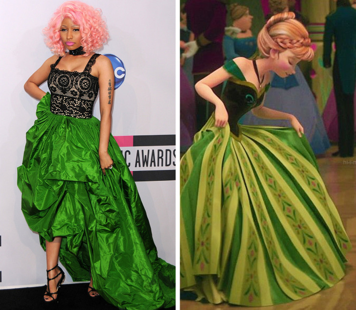 تبدو Nicki Minaj مثل الأميرة Anna من فيلم "Frozen " وهي ترتدي هذا الفستان الأخضر