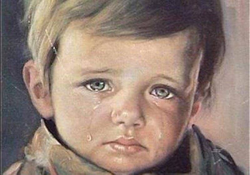 تعود أصول هذه الصورة إلى الرسام الإيطاليBruno Amadio ، والمعروف عنه أنه رسم ما يقرب من 65 لوحة لأطفال يبكون، وكان يبيعها للسيّاح في فترة الخمسينيات. ويعتقد البعض بأن هذه الصور تلاحقها "لعنة"، حسب موقع Exmplore الذي يقول إن كل من يملك اللوحة الأصلية أو طبعة منها معرّض لخطر الإصابة بشدة، أو هناك احتمال كبير أن يحترق منزله. ويدّعي البعض بأن اللوحة مليئة برسائل مموّهة، ممّا يشجع الناس على شراء اللوحة، وأخذها إلى المنزل، وتعليقها على الحائط؛ ونتيجة لذلك، من المحتمل أن يشعلوا النار في منزلهم وهم تحت سيطرة هذه اللوحة. قد يجيب هذا على السؤال الذي طرحه البعض: "لماذا يريد أيّ شخص صورة لطفل يبكي؟".