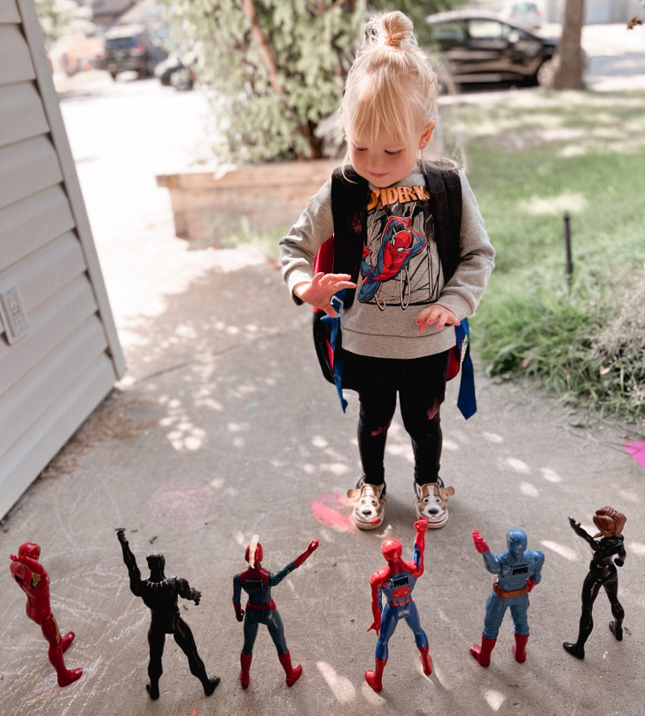 الأبطال الخارقون يودّعون رفيقتهم في أول يوم لها في الحضانة