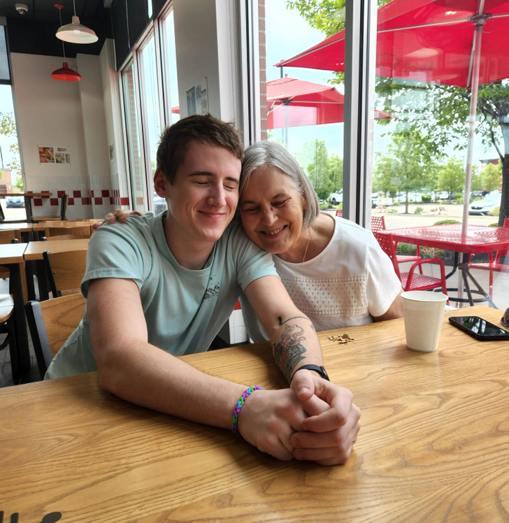 لا بأس، تفضّل بالجلوس في حضني أيها الفتى الكبير