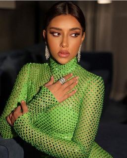 ففي حفلها الأخير في الشارقة، وبأحدث إطلالة بدت الفنانة بلقيس فتحي فاتنة بِفستان أخضر فاتح بتصميم ضَيق ومُحتشم، حيثُ إنه بأكمام طويلة وقبعة مرتفعة، مزيَّن بلمسات برَّاقعة باللَّون الفضّي والرِيَش التي منحته الفخافة. مع اعتمادها #صيحة المكياج البرونزي الذي يُناسب نوع بشرتها مع أحمر خدود بنفس الدرجة، وأحمر شفاه برونزي لامع.