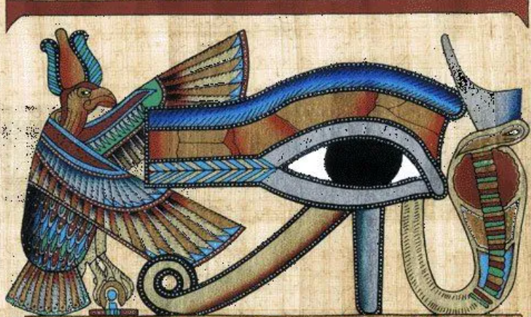 في الأساطير المصرية، حورس هو ملاك مصري قديم يتجسد في هيئة نسر. العين اليمنى للصقر هي عين الإله حورس، وتعتبر أيضًا رمزًا للشمس. العين اليسرى ترمز إلى القمر والإله تهوتي. اعتقد القدماء أنّ هذا الرمز الخالد من شأنه أن يدعم التناسخ، لذلك تمّ العثور عليه تحت الطبقة الثانية عشرة من مومياء الملك توت عنخ آمون.