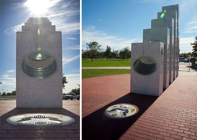 - في تمام الساعة 11:11 صباحًا من كلّ يوم من أيام المحاربين القدامى، تمرّ أشعة الشمس عبر علامات الحذف لأعمدة القوات المسلحة الخمسة لتشكل ضوءًا شمسيًا مثاليًا فوق فسيفساء من الختم العظيم للولايات المتحدة.