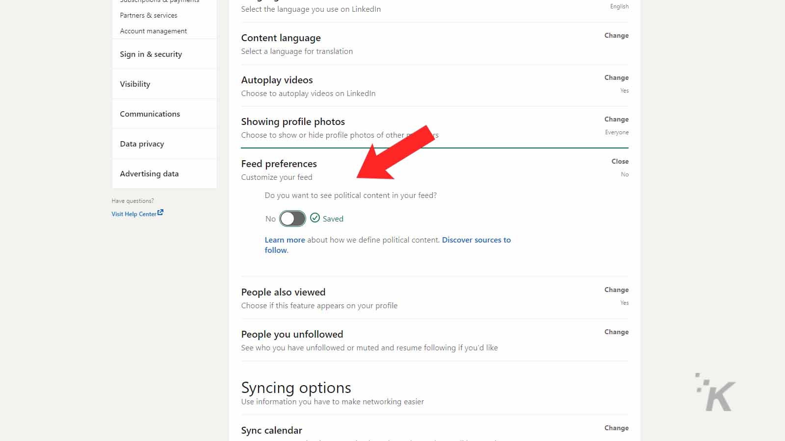 من هنا، يمكنك ببساطة تحديد السؤال، "هل تريد مشاهدة المحتوى السياسي في خلاصتك؟" ثم قم بتبديل هذا السؤال إلى "لا". هذه هي الطريقة المبسّطة والأحدث لحظر المحتوى السياسي.