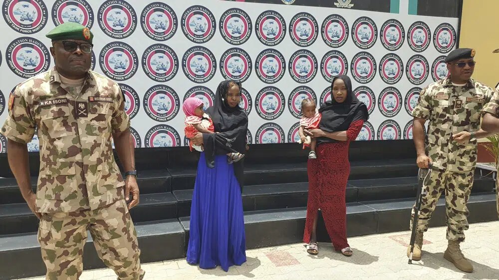 والخميس، قدم ضباط نيجيريون الفتاتين هوا مالثا واستير ماركوس للصحافيين في مايدوغوري العاصمة الإقليمية. وكان تم إنقاذهما في 21 نيسان.